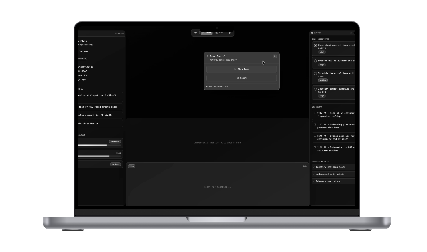 - Real-time sales coach and teleprompter